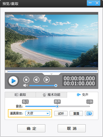 丰富的变声功能:通过轻轻调节音色,即可实现将人声丝滑的变成各种音色的男声或女声、童声、怪物、反派的声音,简单快捷。